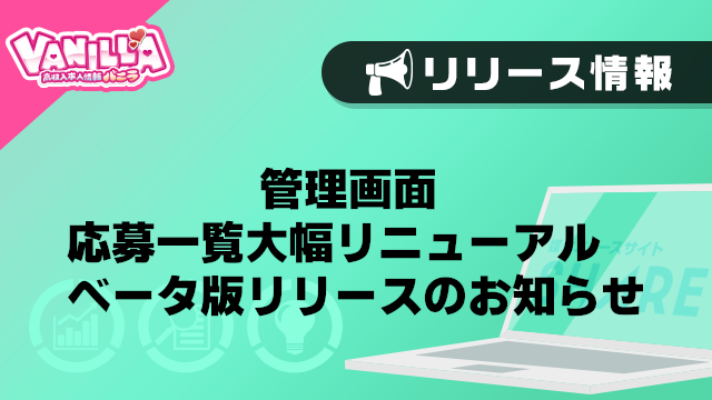 【バニラ】管理画面 応募一覧大幅リニューアル ベータ版リリースのお知らせ