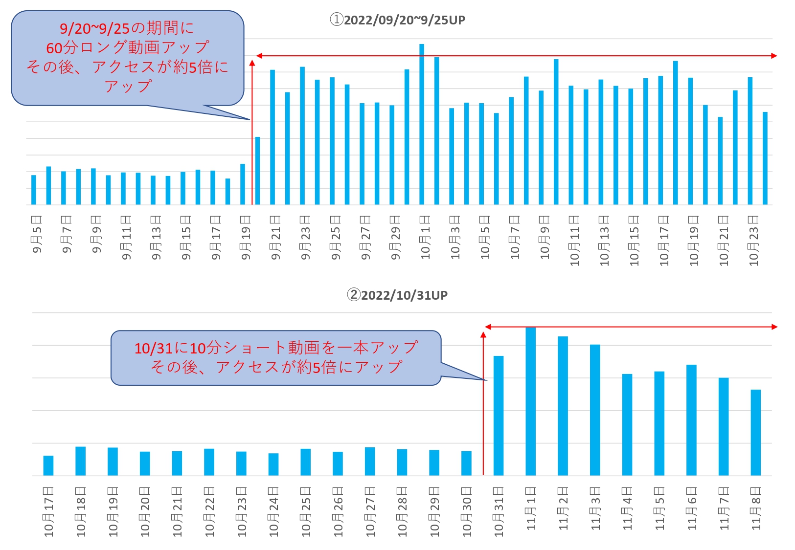 ロング動画とショート動画、それぞれ実際にアクセスが上がっていることがわかりました。