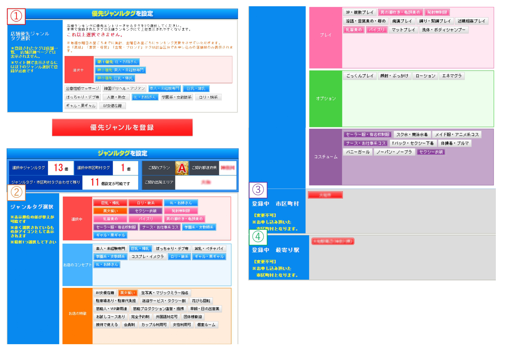 限られたタグ数の中でジャンルタグ/市区町村タグ/優先ジャンルタグを適切に割り振って、