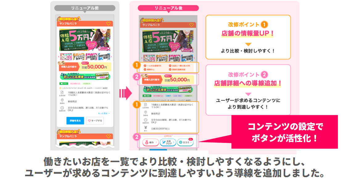 ・検索一覧ページでの口コミ/店長ブログなど関連コンテンツへの導線強化